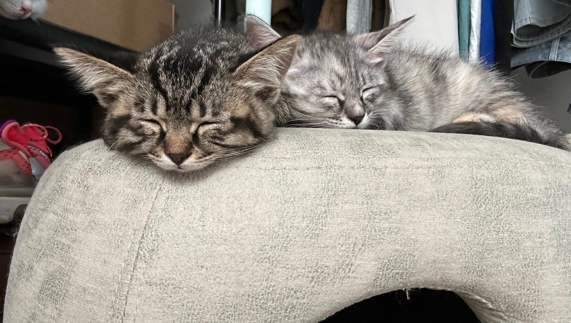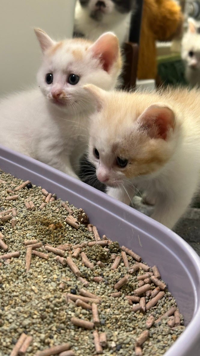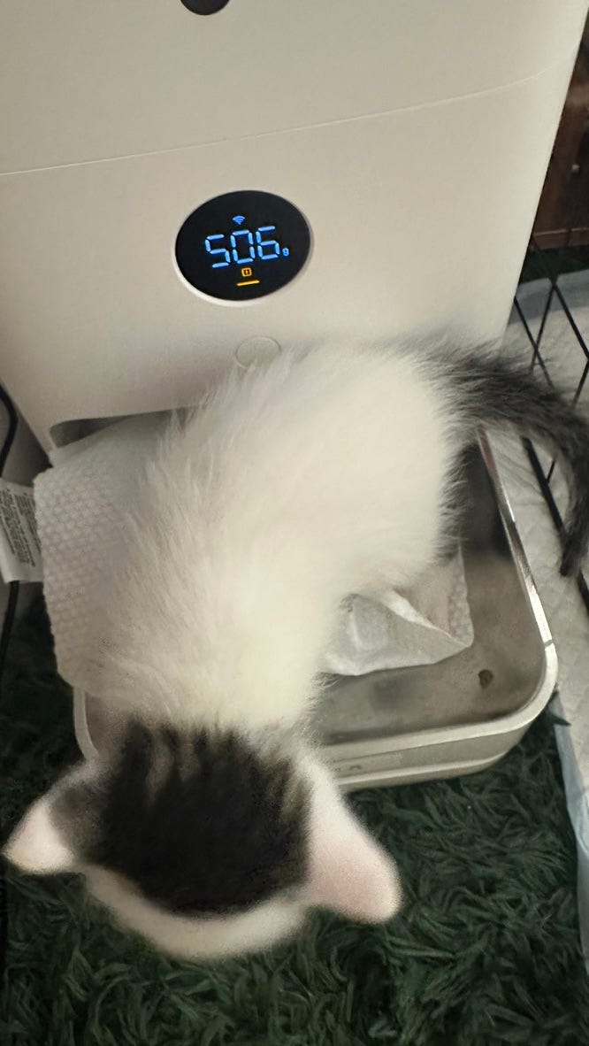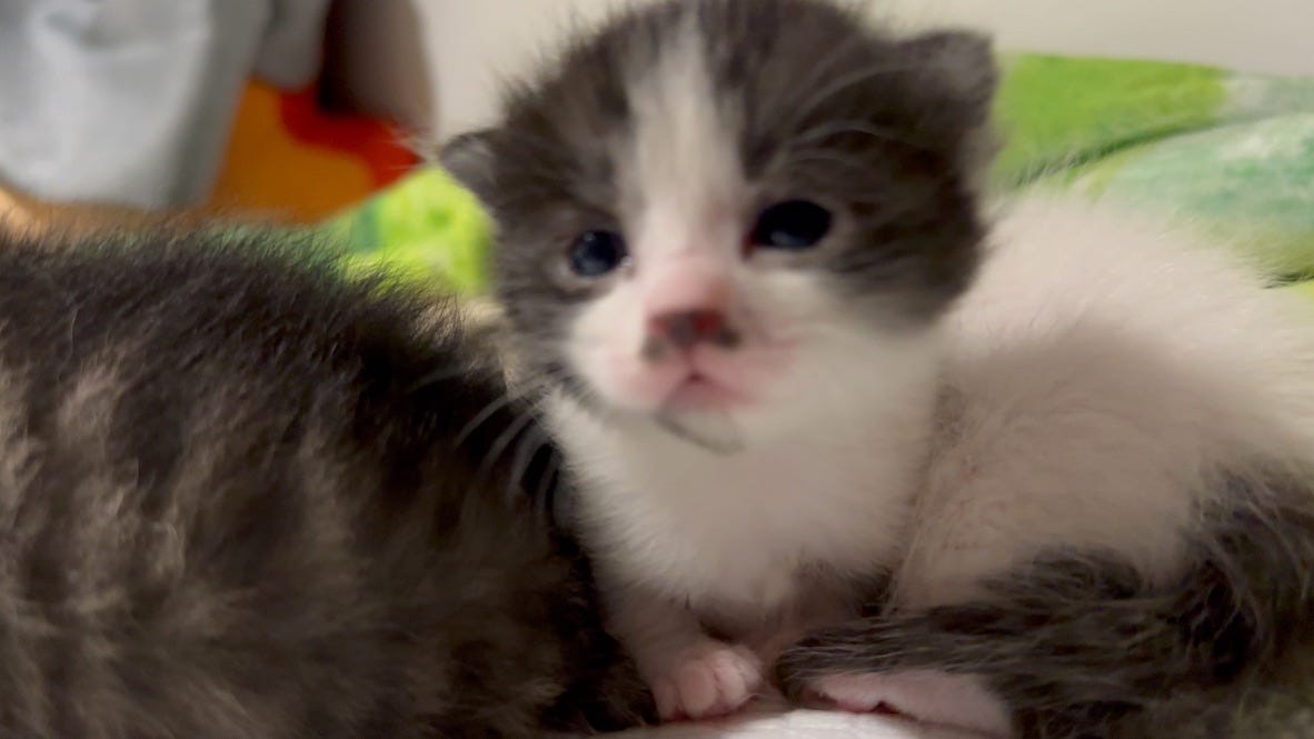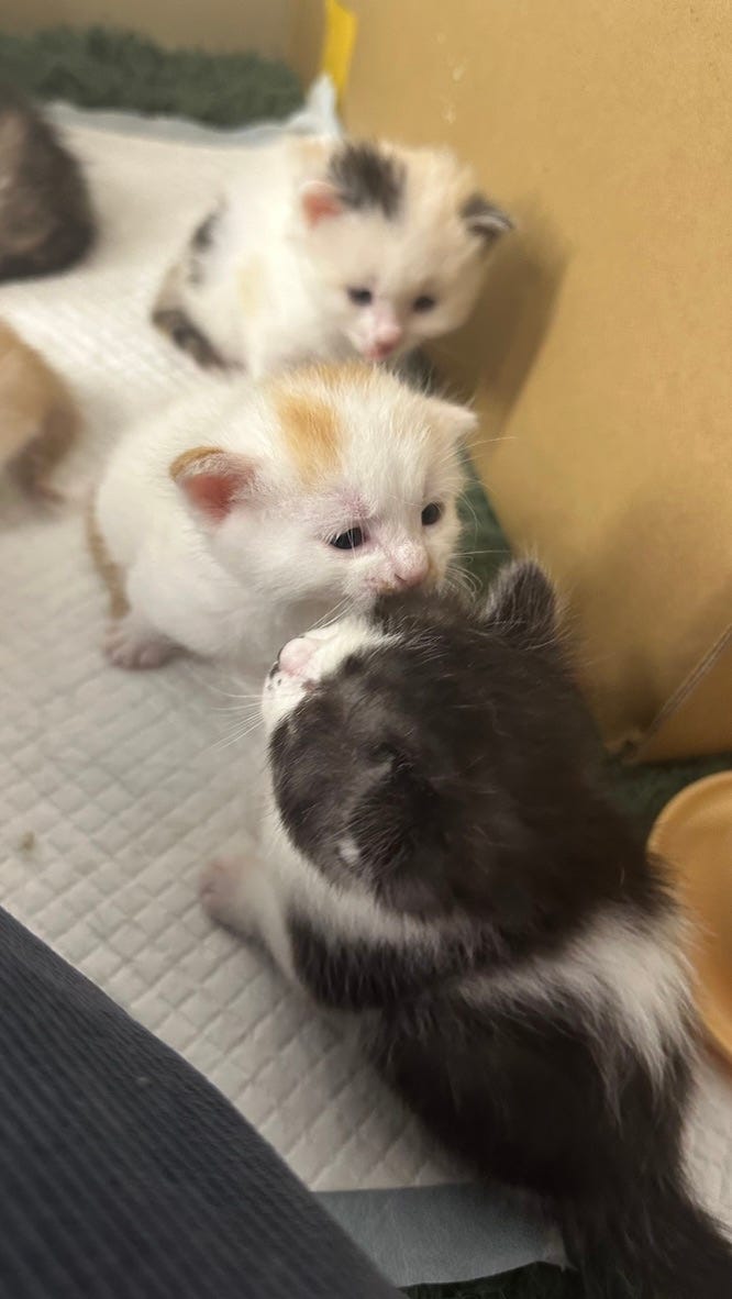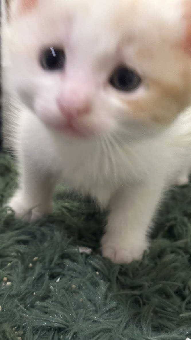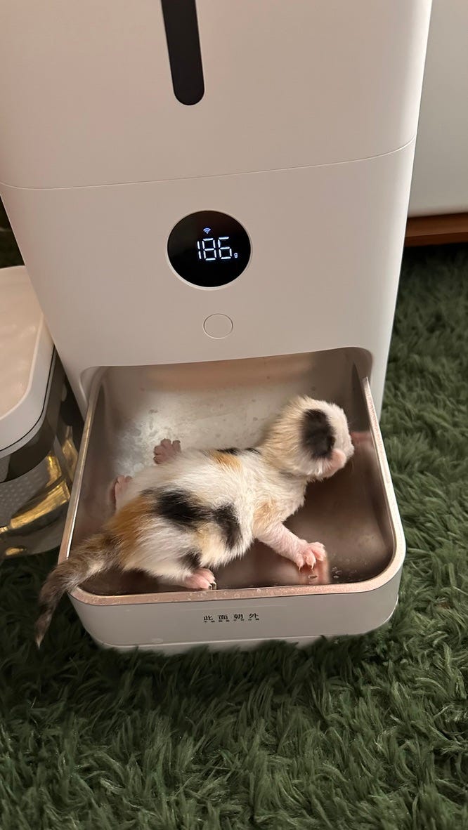 小猫幼儿园还有一位插班生宝宝,是我在公司楼下的树丛里捡到的,捡到它的时候,小猫大概只有一个半月大(因为从0开始养过七个小猫了所以我也算是个小猫专家),比家里的七个兄弟姐妹。声嘶力竭地狂叫,但是并没有太怕人,被我偷偷装在纸盒子里藏在了公司的装修楼层。它的运气很好,当天就在朋友的帮忙下找到了领养人,当晚就去往新家完成了逆天改命。领养人给它起名叫颩颩(diū),颩颩因为流浪的时间太短,没有碰到过坏人类,立刻就变成了粘人的乖小猫。