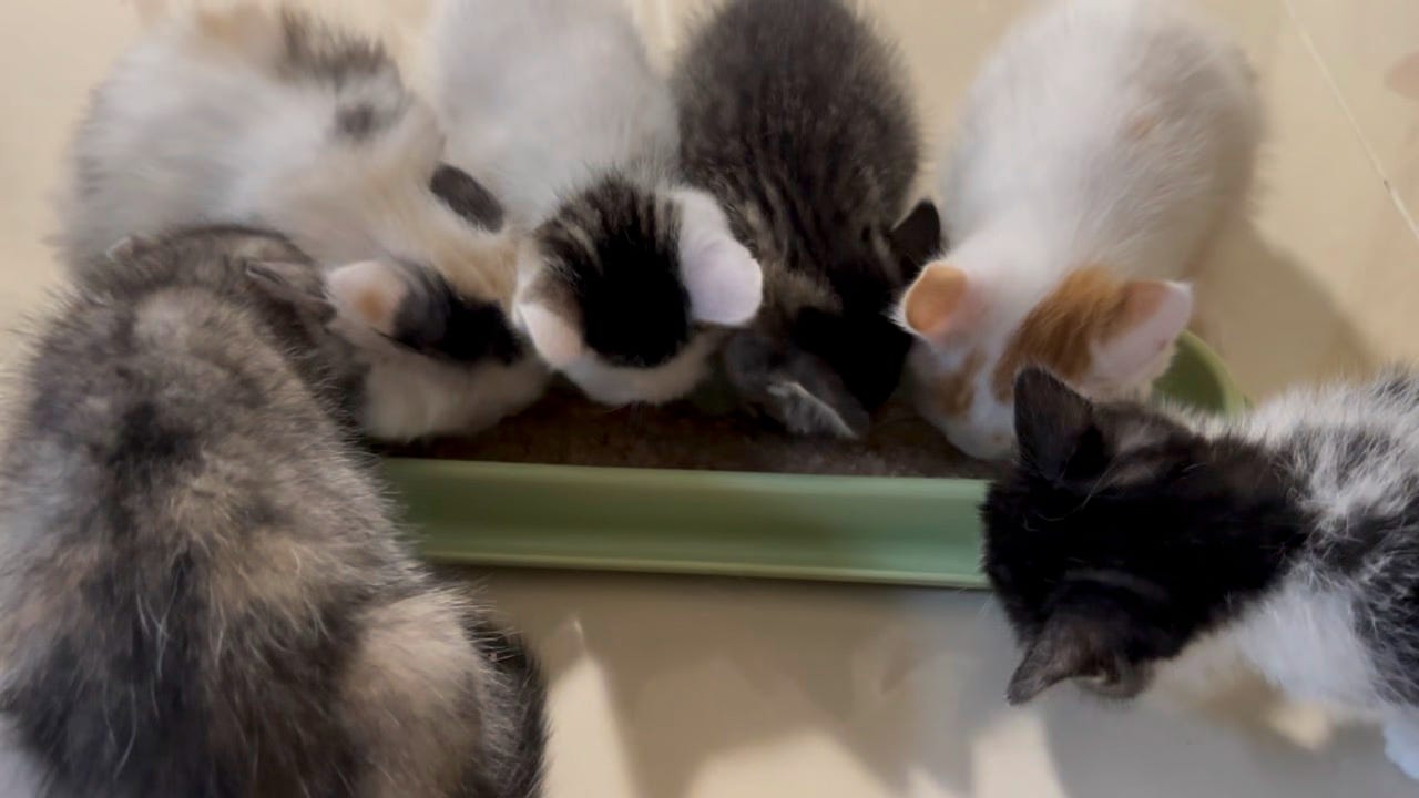 我和小鼻嘎们的关系从一开始就是注定短暂的,它们在我家健康成长到了两个多月,断奶后随后陆陆续续去到了领养人的家里,从我的小猫幼儿园毕业了。老七是最后被我留下来的那只,和妈妈住在一起。在各自新家里,小猫们全都有了很爱它们的爸妈,也有了新的名字:老大叫涂涂,老二叫恭喜,老三叫阿哥,老四叫年糕,老五叫栗子,老六叫汤圆,老七叫麦麦。