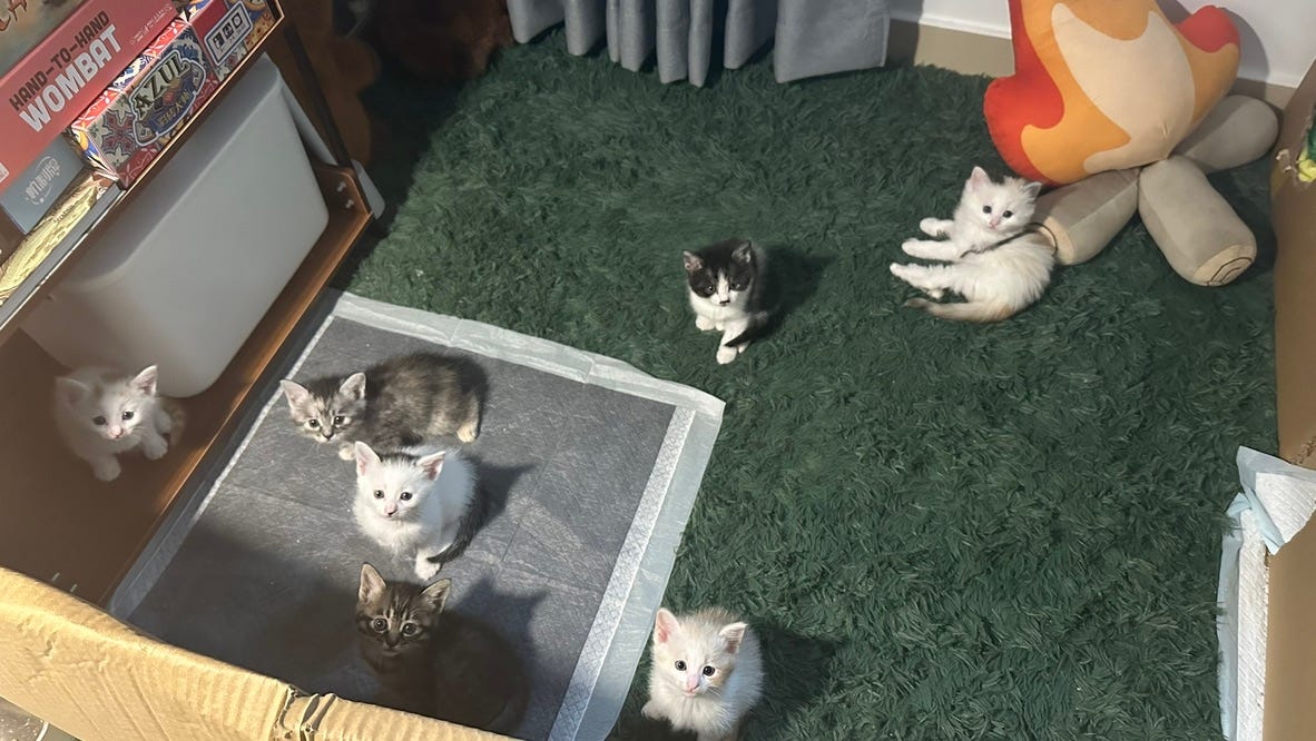 上一封信的结尾,我有提到我收养了的流浪猫生了七只小猫。这一封信,当然,一封短短的邮件(虽然附了一些图)完全无法描述我这几个月来获得的幸福和麻烦。但这也许是我近两年生活里最值得拿出来炫耀炫耀的事情了,就连我这么不爱说话的人也能拉着你说上一小时: