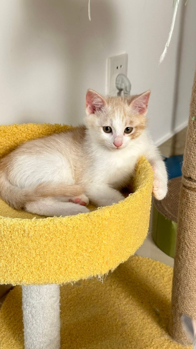 橘白,白色为主(老三的换色版),像个漏馅的花生汤圆。老四老六这两个小公猫,是最皮最好斗的,小猫都长大会玩以后,只要发生打架,当事猫一定有老四老六其中之一。