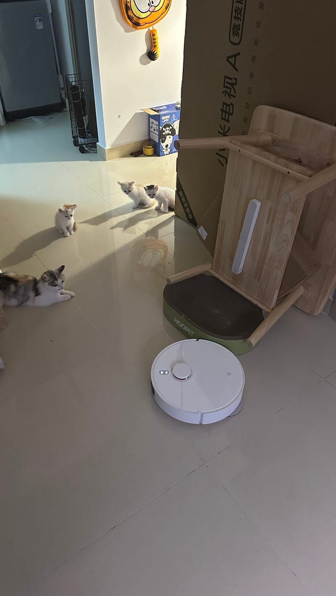 我每天中午都骑车回家看看小猫们好不好,然后记录一下它们的成长。虽然也买了摄像头,但还是放不下心。小猫们出生时是不会拉屎拉尿的,头几天都只会拉一些像生鸡蛋黄一样的东西,然后很快被猫妈舔掉;小猫们在10天左右普遍睁眼,眼睛里都有一层雾蓝雾蓝的蓝膜;10-15天左右,长出一层绒绒的毛,腿脚逐渐健壮,从在地上一下一下地爬,变得能够颤颤巍巍地用小脚撑起身体了;15-25天左右主要练习走路,从东倒西歪的走路变成了能稳稳地蹲着,还能在玩偶上爬上爬下,能拉出来一些海米大小的细屎豆子;满月的小猫有的已经开始学妈妈的样,吃几颗猫粮了;为了照顾身体弱抢不到奶的,每天中午我都给它们冲羊奶粉,放在长条的盆里大家一起喝。