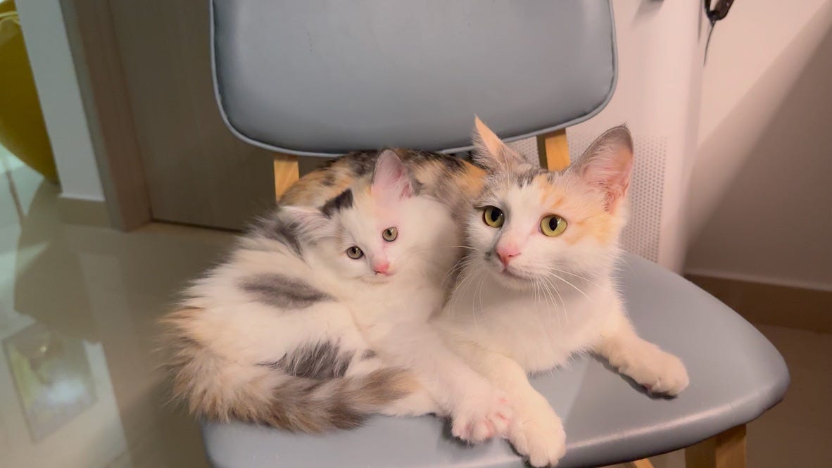 老五是遗传了妈妈美貌的小三花,而且是唯一的长毛猫。因此从一开始就很受排队的领养人欢迎。老五也和老四一起被妈妈丢过,老五小时候瘦得让人心疼,感觉碰一碰那个细细的脖子就会断掉,但开始长毛以后很快就变成了小美女。