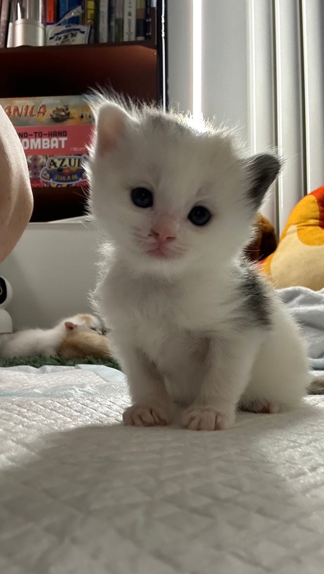 老二是一只标准的奶牛猫(后来证实性格也是标准奶牛),该说不说,奶牛猫小时候真是太可爱了…我给它拍了最多的照片,以至于我一度想把它留下来当自己的猫。